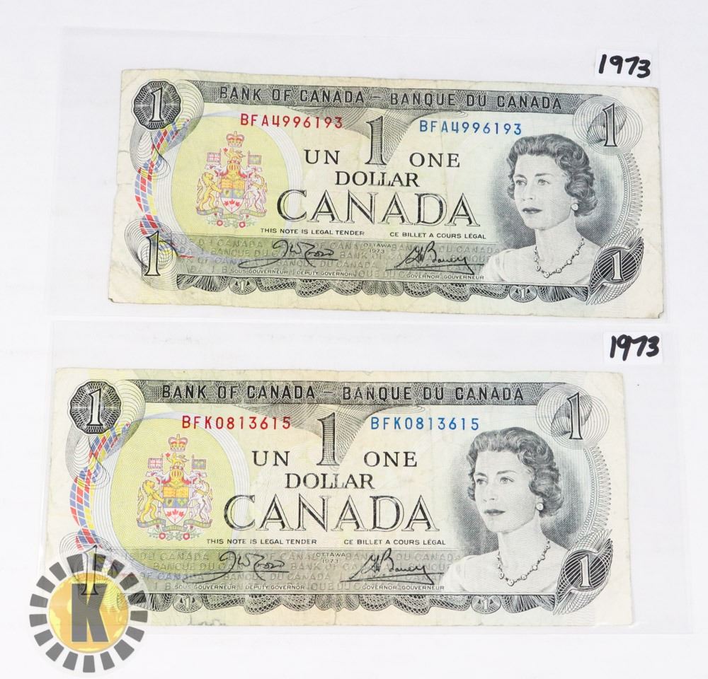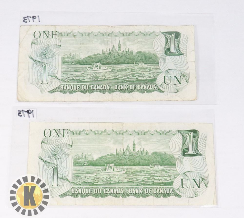TWO CANADIAN 1973 ONE DOLLAR BANK NOTES
