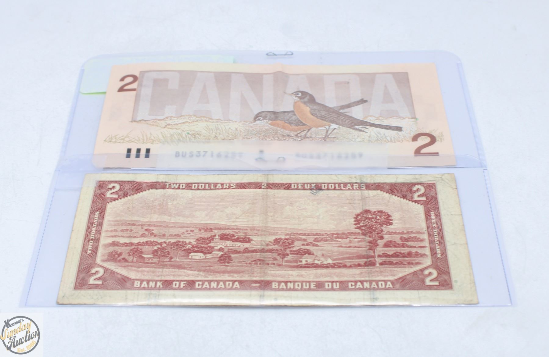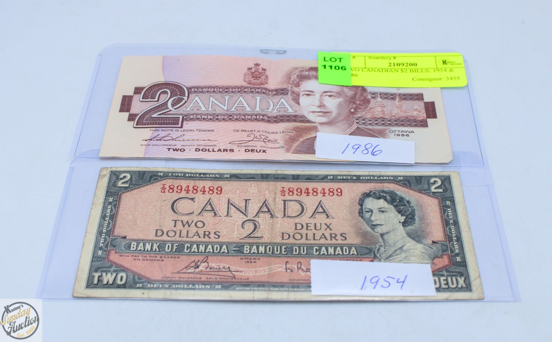 TWO CANADIAN $2 BILLS: 1954 & 1986