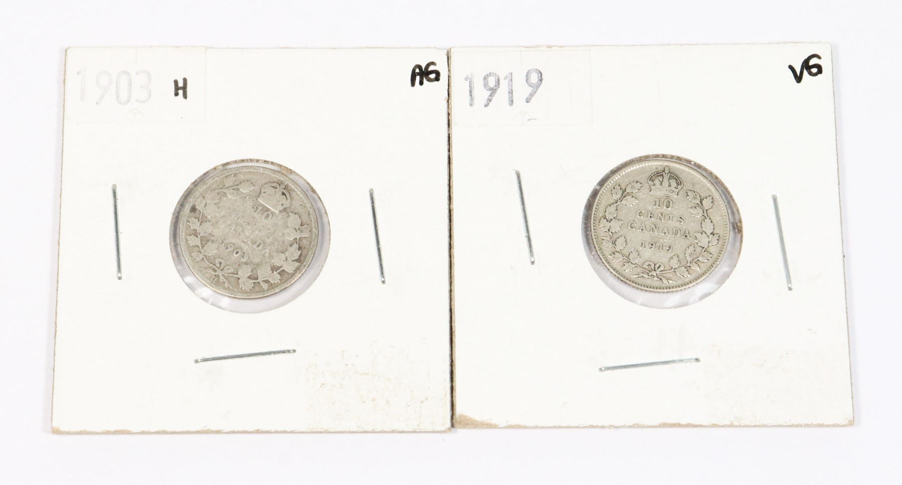 TWO CANADIAN SILVER DIMES 1903, 1919