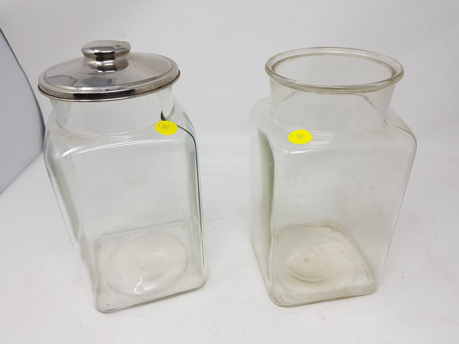 TWO CANDY JARS (1 WITH LID, 1 WITHOUT LID)