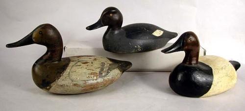 TWO CANVASBACK DRAKE DECOYS; Probably Maryland (losses to paint)