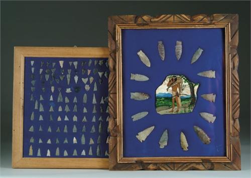 TWO CASES OF POINTS. One Mississippian projectile points, Circa 1200-1500AD style. Approximately 100 points. Other is with Indian painting in center of 14 points. Archaic to Woodland points, Circa 6000BC style-100BC style. CONDITION: Good to very good. 9-25984-118 The Tennessee Collection of Prehistoric Indian Artifacts from the Allen Graves Estate. SPECIAL NOTE: We do not regularly sell Prehistoric Indian stone artifacts and therefore have very little experience and no expertise in this area. All of the following lots have come from the Collection of the Late Allen Graves of Tennessee. The collection was inherited some years back by his daughter, who now lives in Maine. This collection was consigned to us directly from her. We employed someone to generally identify styles and types, but as stated above, due to our lack of expertise in this field, we can not guarantee the age or origin of the following pieces. We are relying on you, the buyer, to determine to your satisfaction the origin and age of each item in the collection.