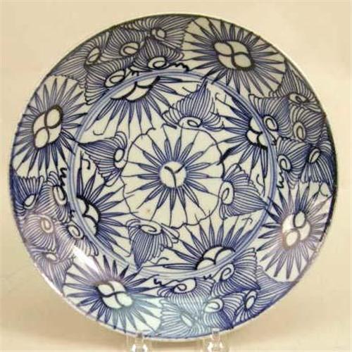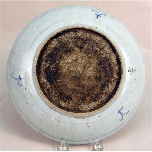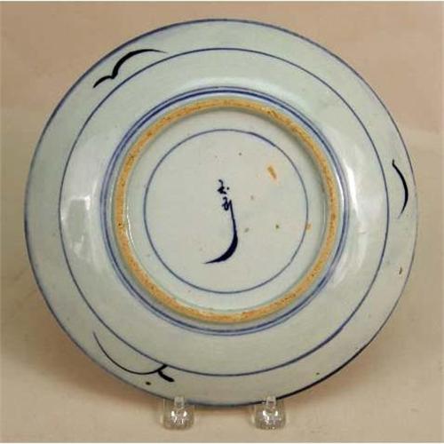 TWO CHINESE BLUE AND WHITE DECORATED PLATES<BR><BR>Lotus pattern, 9-1/4"dia