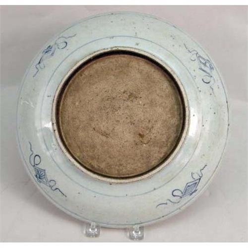 TWO CHINESE BLUE AND WHITE DECORATED PLATES<BR><BR>One with a teardrop pattern, the other with a central medallion, Largest: 11"dia