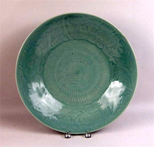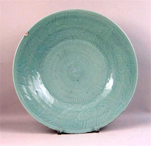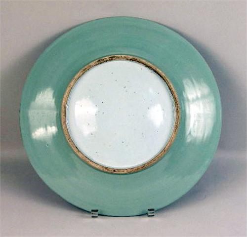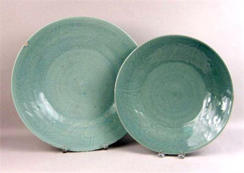 From 13 1/2"dia to 16"dia. Chips to rim, larger plate has large chip.