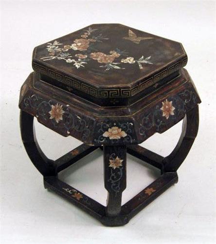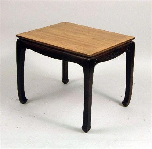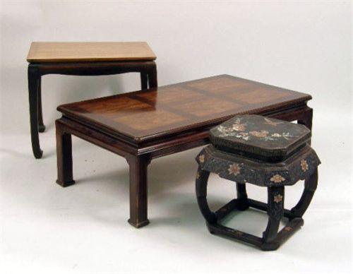 <B>TWO CHINESE CHIPPENDALE-STYLE LOW TABLES</B><BR><BR>Together with a Chinese lacquered side table. 3 pieces. 16"h x 44"l x 26"d