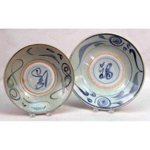 TWO CHINESE EXPORT CERAMIC SHALLOW BOWLS<BR><BR>One green and one blue, from 9-1/2"dia to 11"dia.
