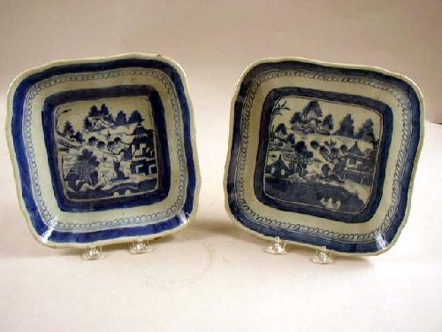 TWO CHINESE EXPORT PORCELAIN "SQUARE" VEGETABLE DISHES; Canton, 9"l