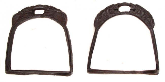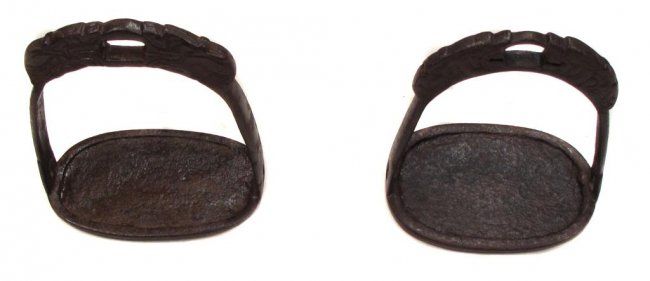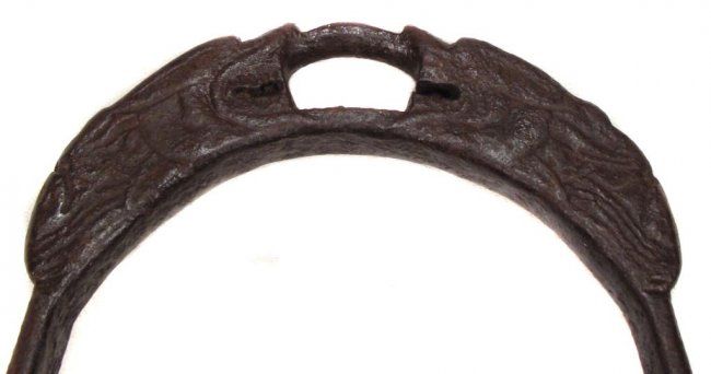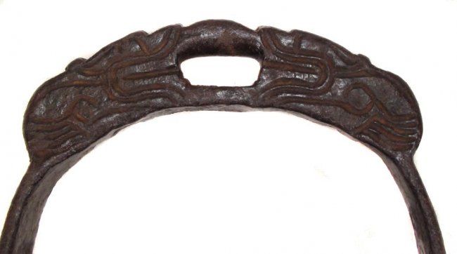 Iron, with chiseled dragon?s heads.Latter Qing Dynasty. 19th century. Light wear.