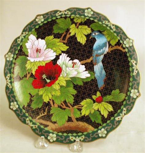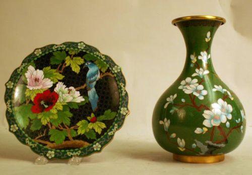 Chinese, comprising a floral decorated baluster form vase, 10 1/4"h, and a bird and floral decorated plate, 9"dia.