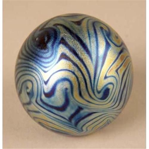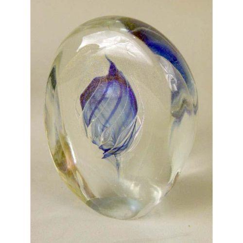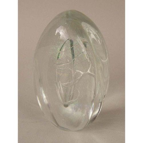 TWO COLORLESS AND IRIDESCENT GLASS TEARDROP-FORM PAPERWEIGHTS<BR><BR>together with a small round iridescent glass example. All marked "Eickholt."