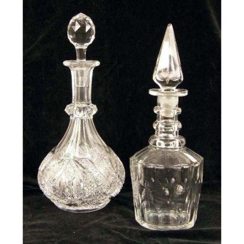TWO COLORLESS GLASS STOPPERED DECANTERS<BR><BR>Wear, 12"h
