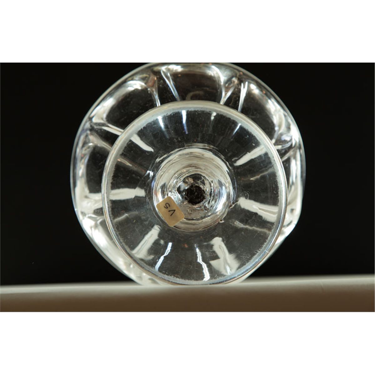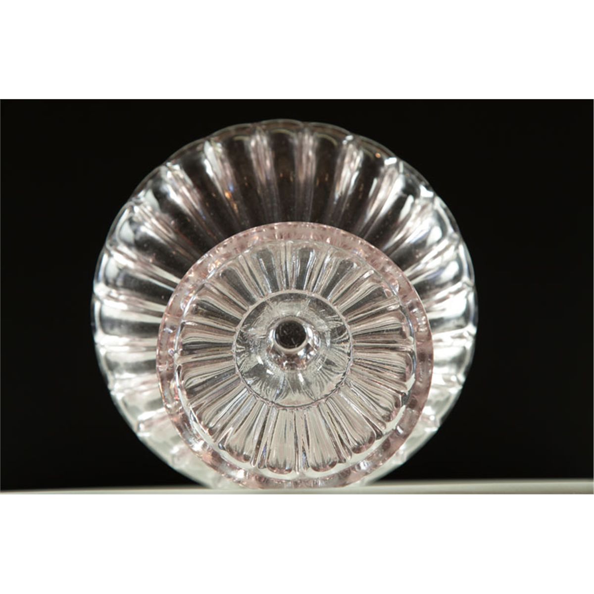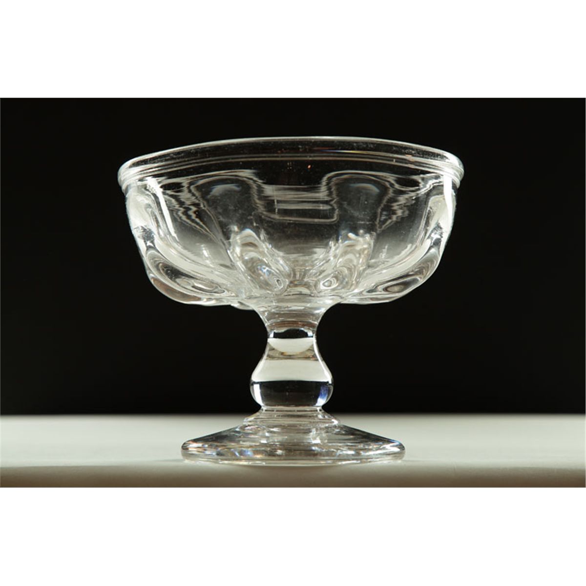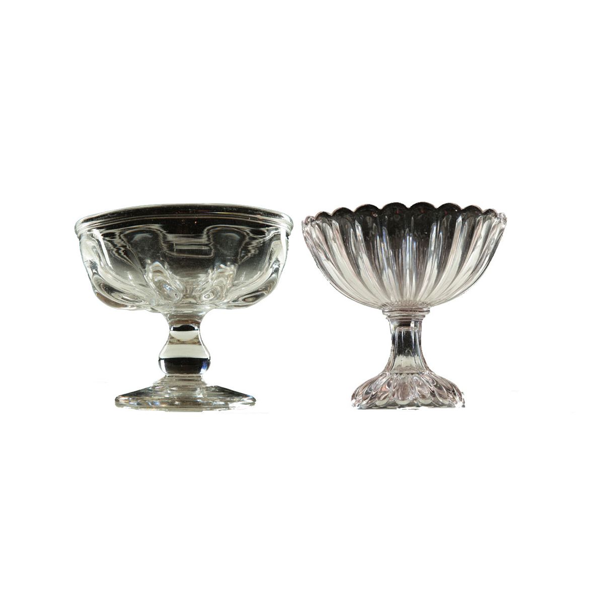 Pittsburgh, Pennsylvania, 1820-1850, blown glass. Pillar mold with a baluster stem and folded rim, 7"h., and and a pressed loop pattern compote, 8 1/2"h.