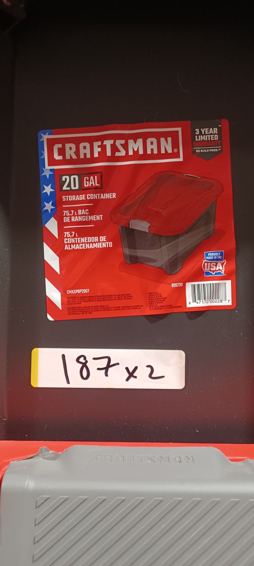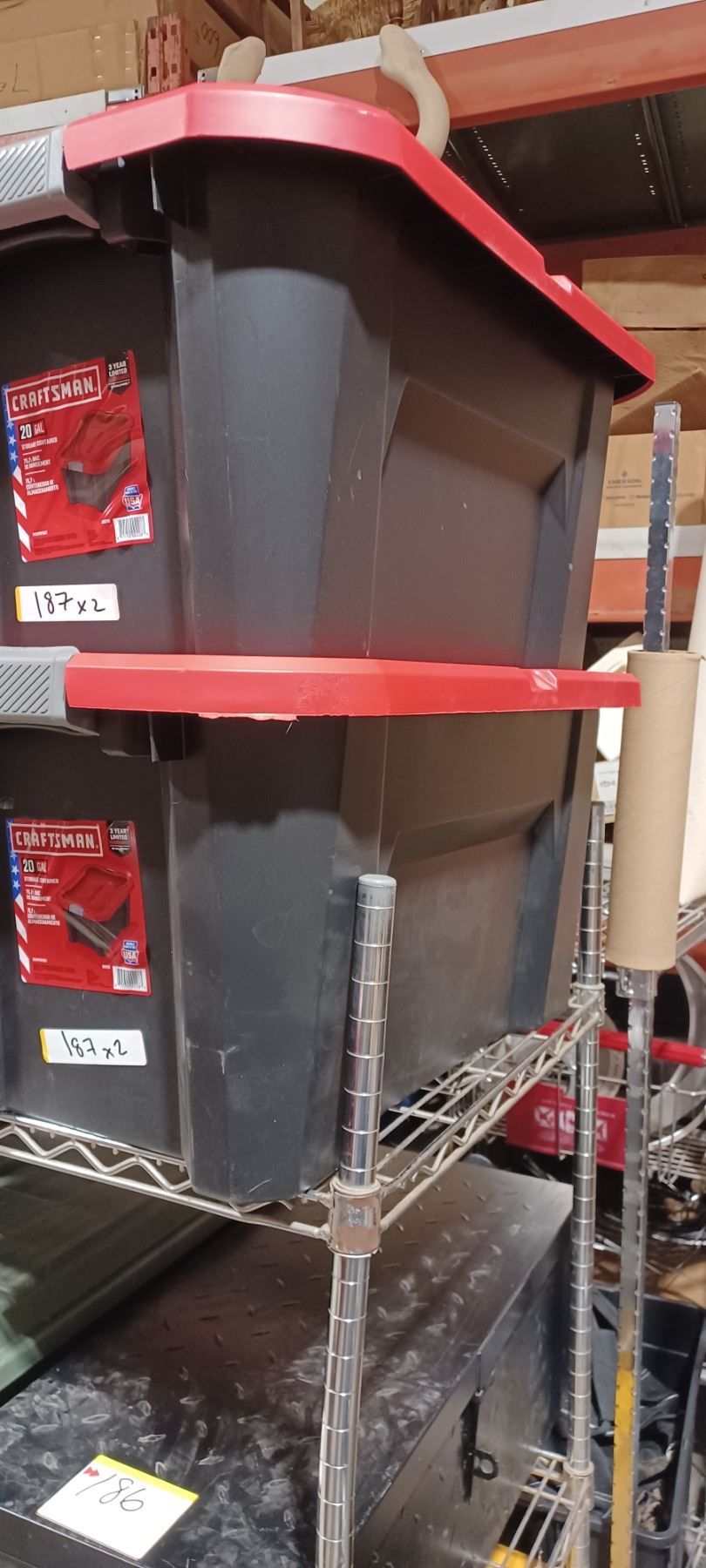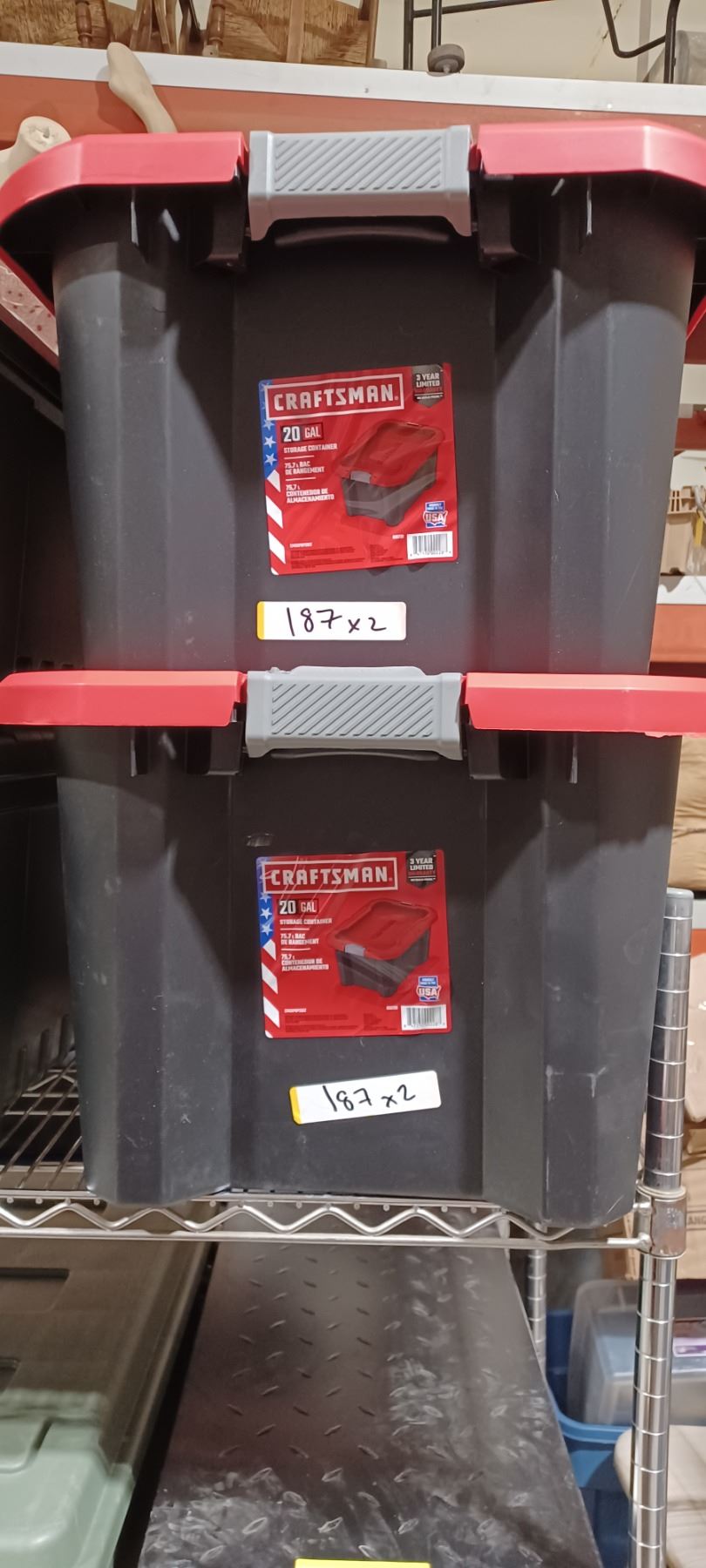 TWO CRAFTSMAN 20 GAL TOTES, STACKABLE