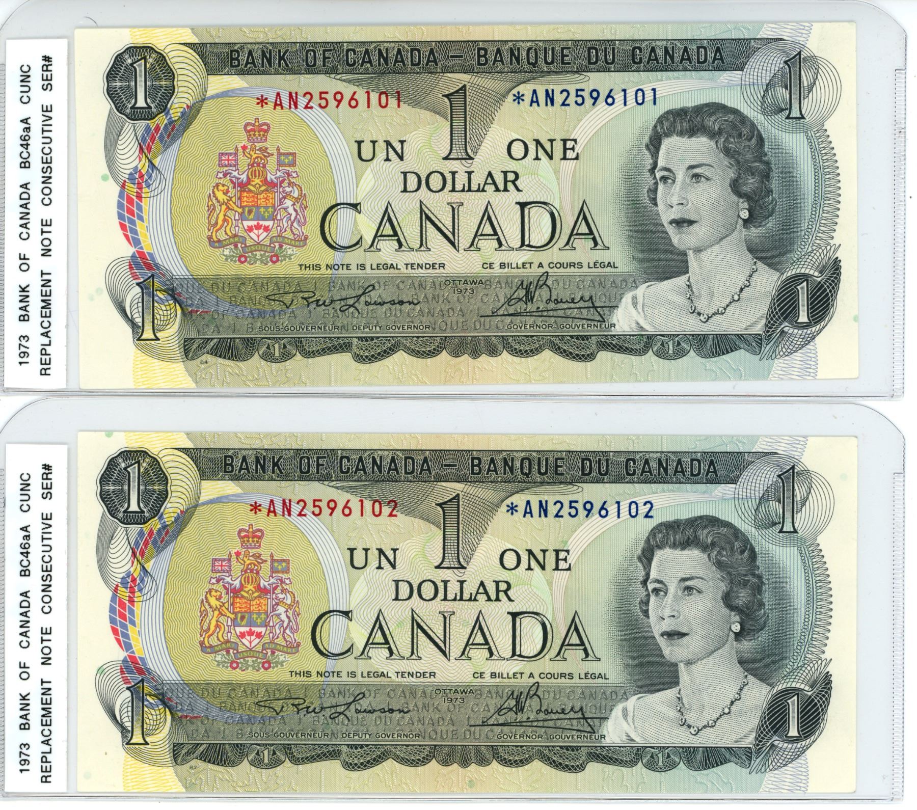 TWO Consecutive 1973 BC-46aA One dollar Lawson-Bouey *AN2596101-102 CUNC