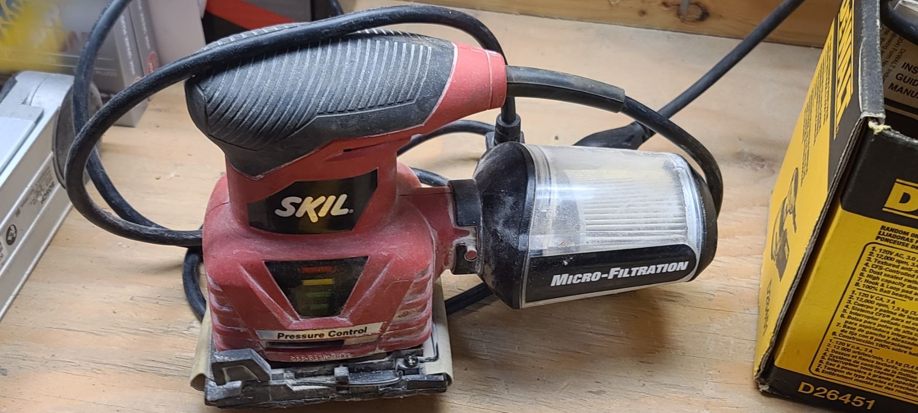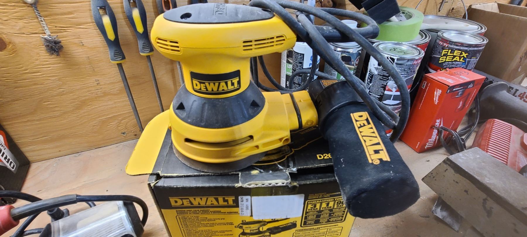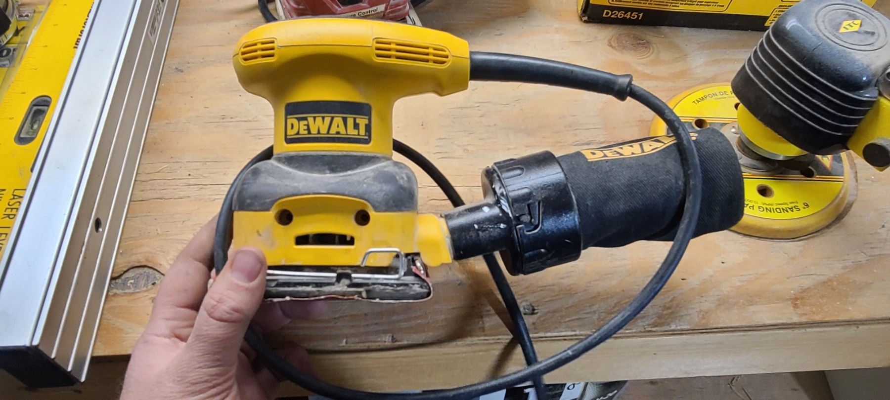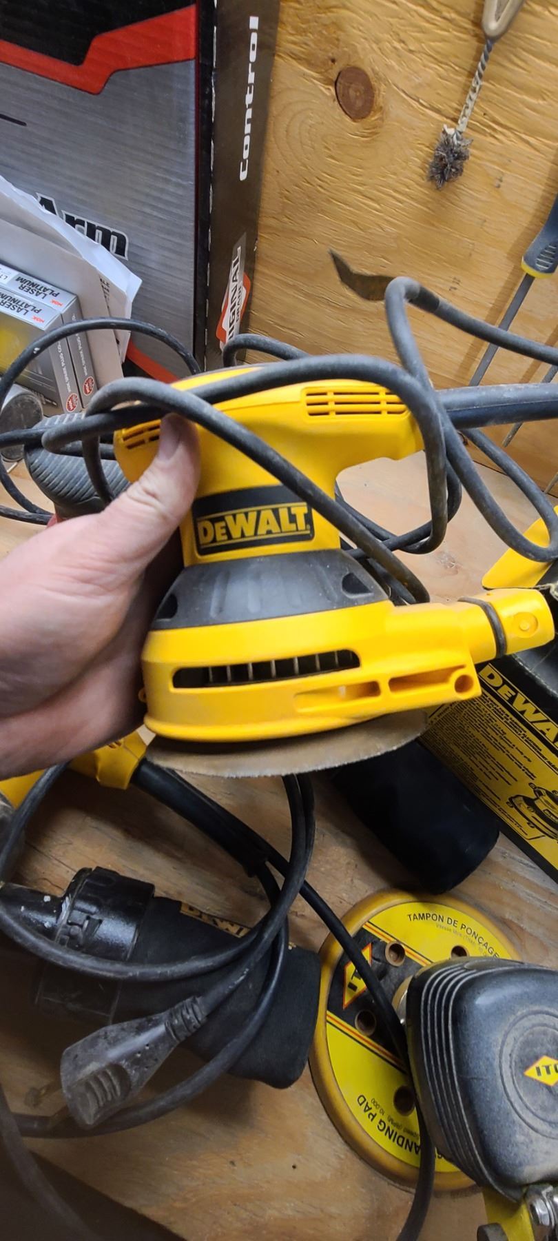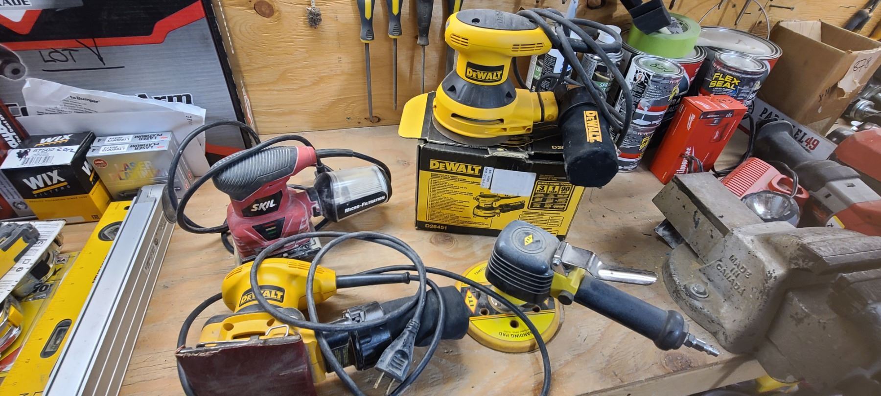 TWO DEWALT SANDERS, ONE AIR SANDER, AND ONE SKIL SANDER