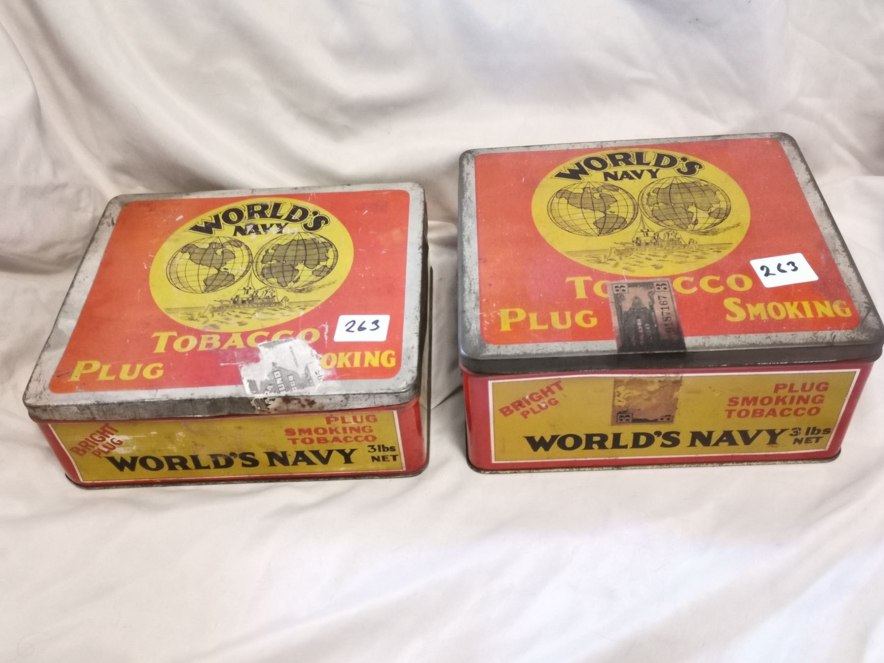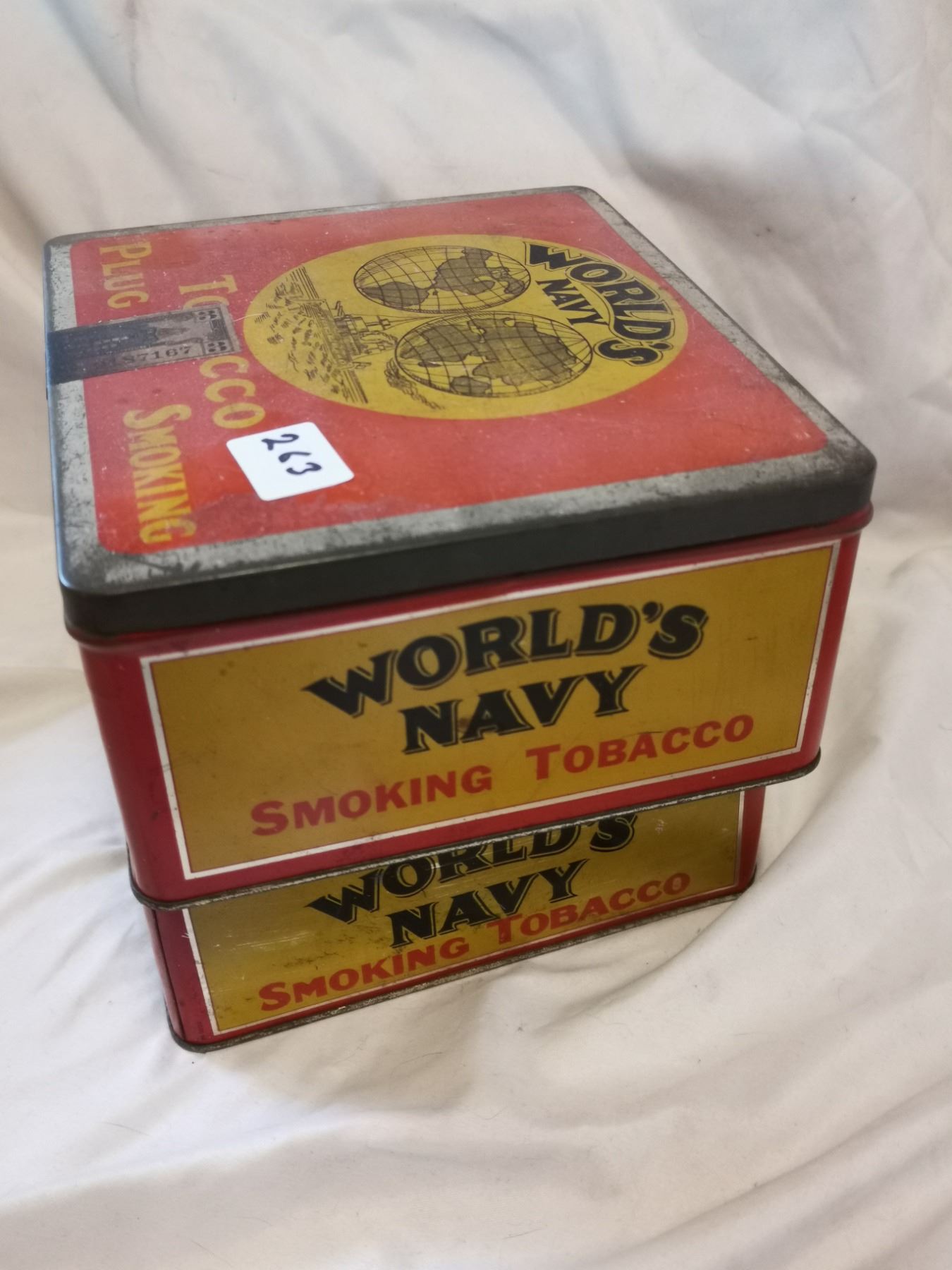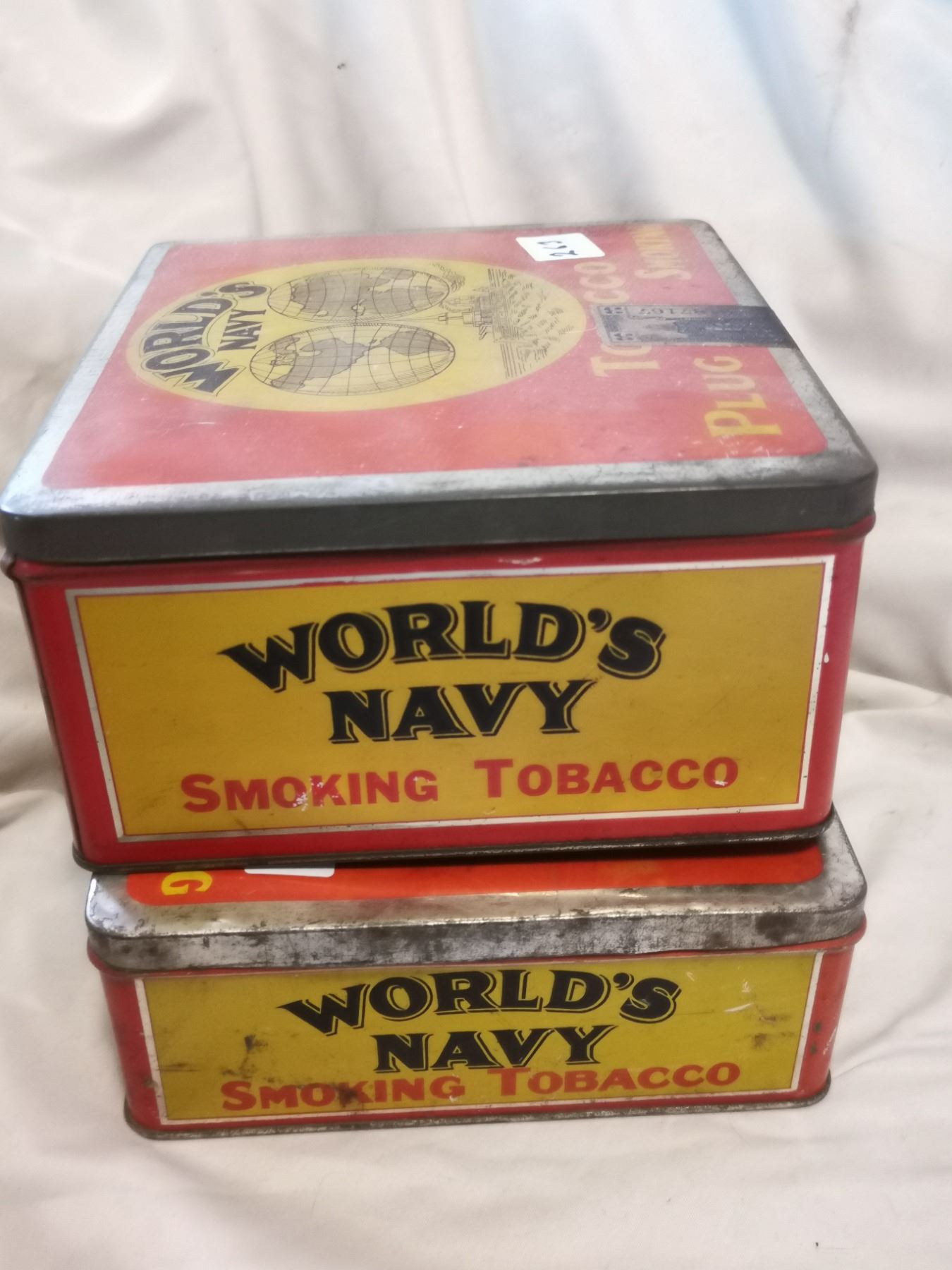 TWO DIFFERENT WORLD NAVY TOBACCO TIN CANS