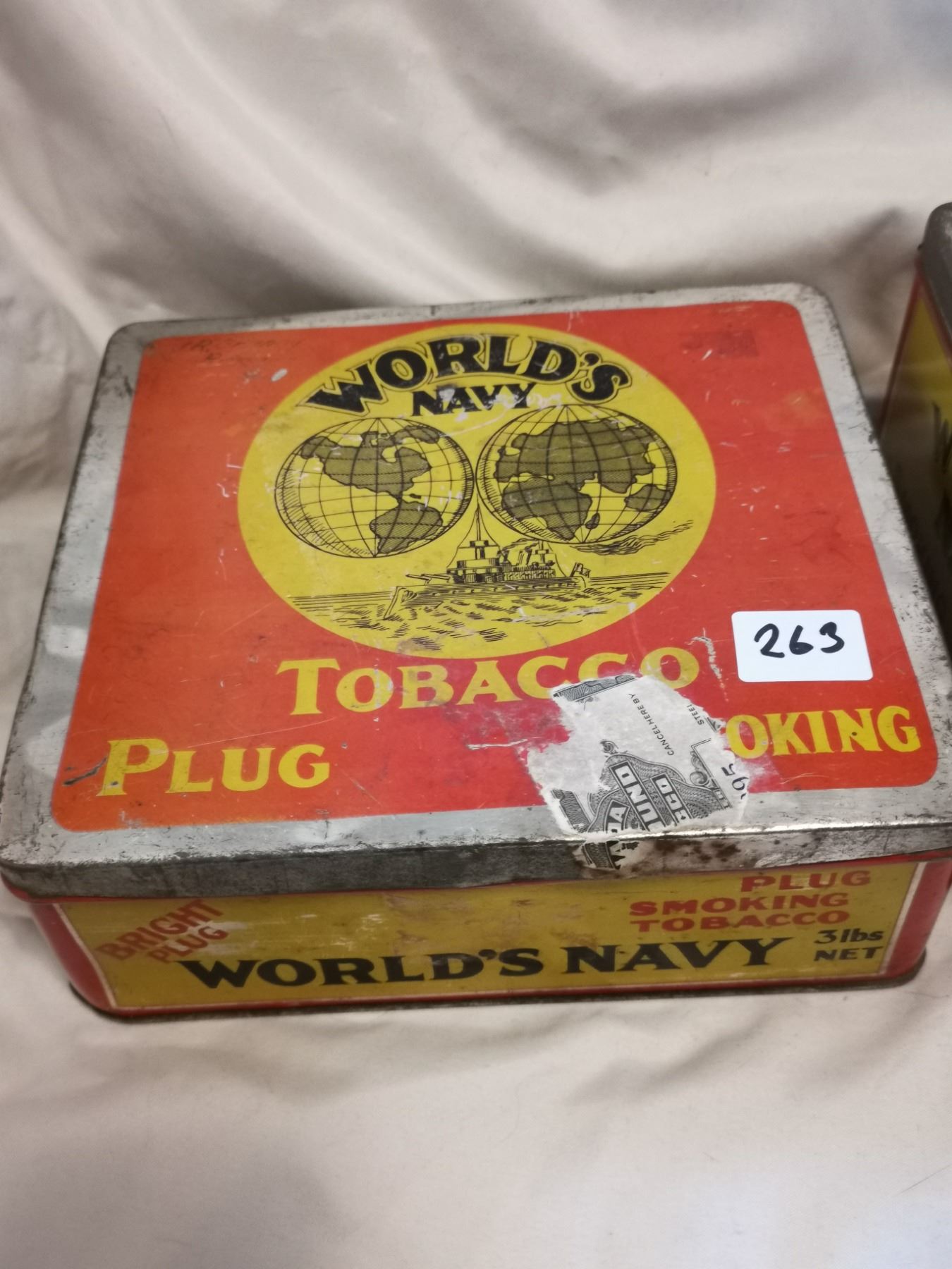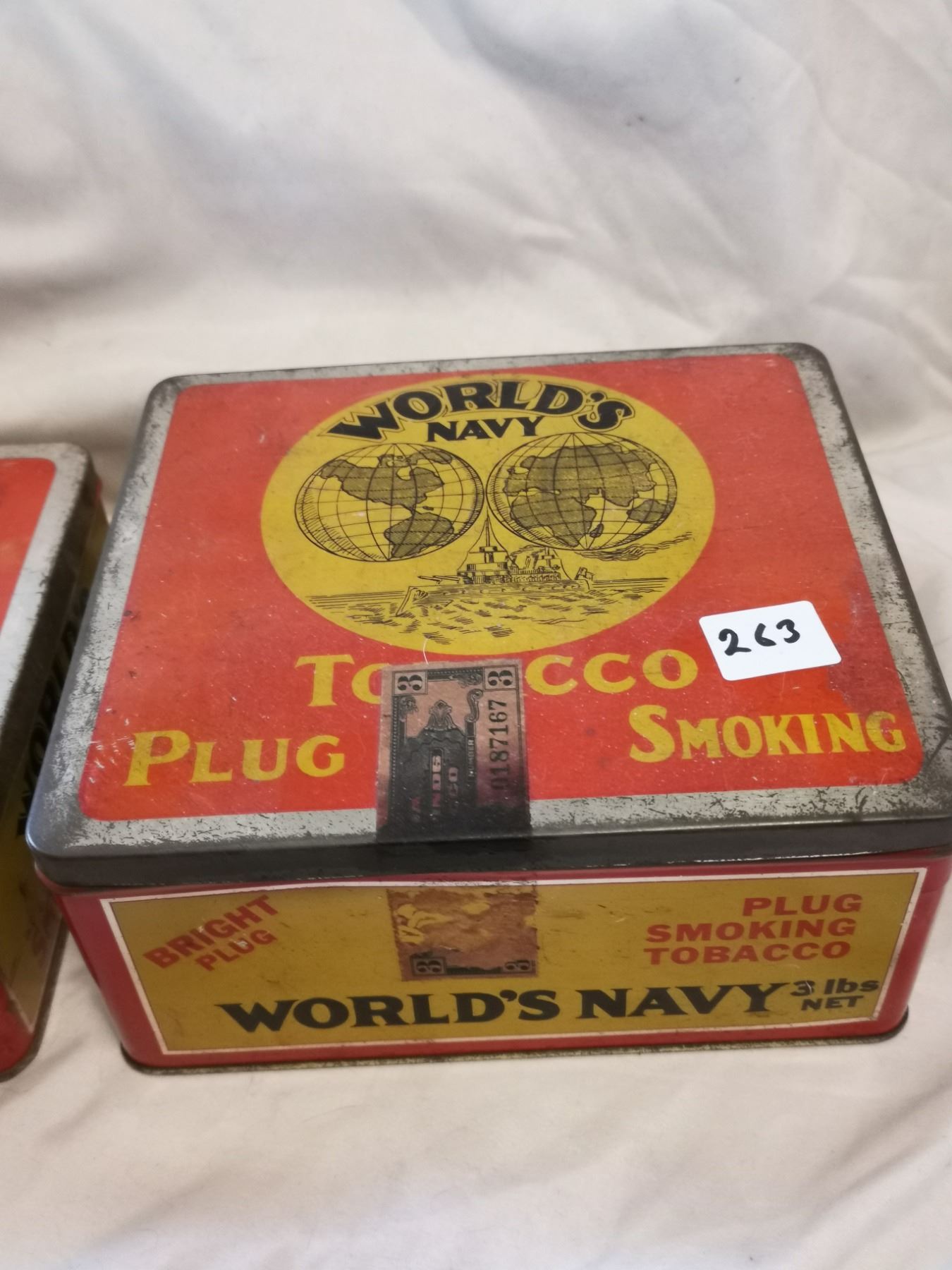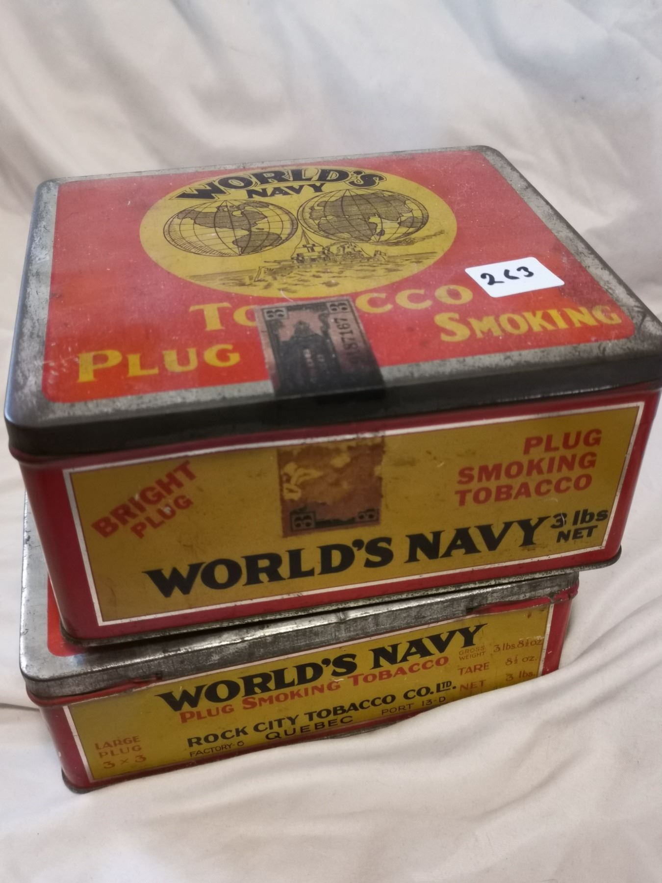 TWO DIFFERENT WORLD NAVY TOBACCO TIN CANS