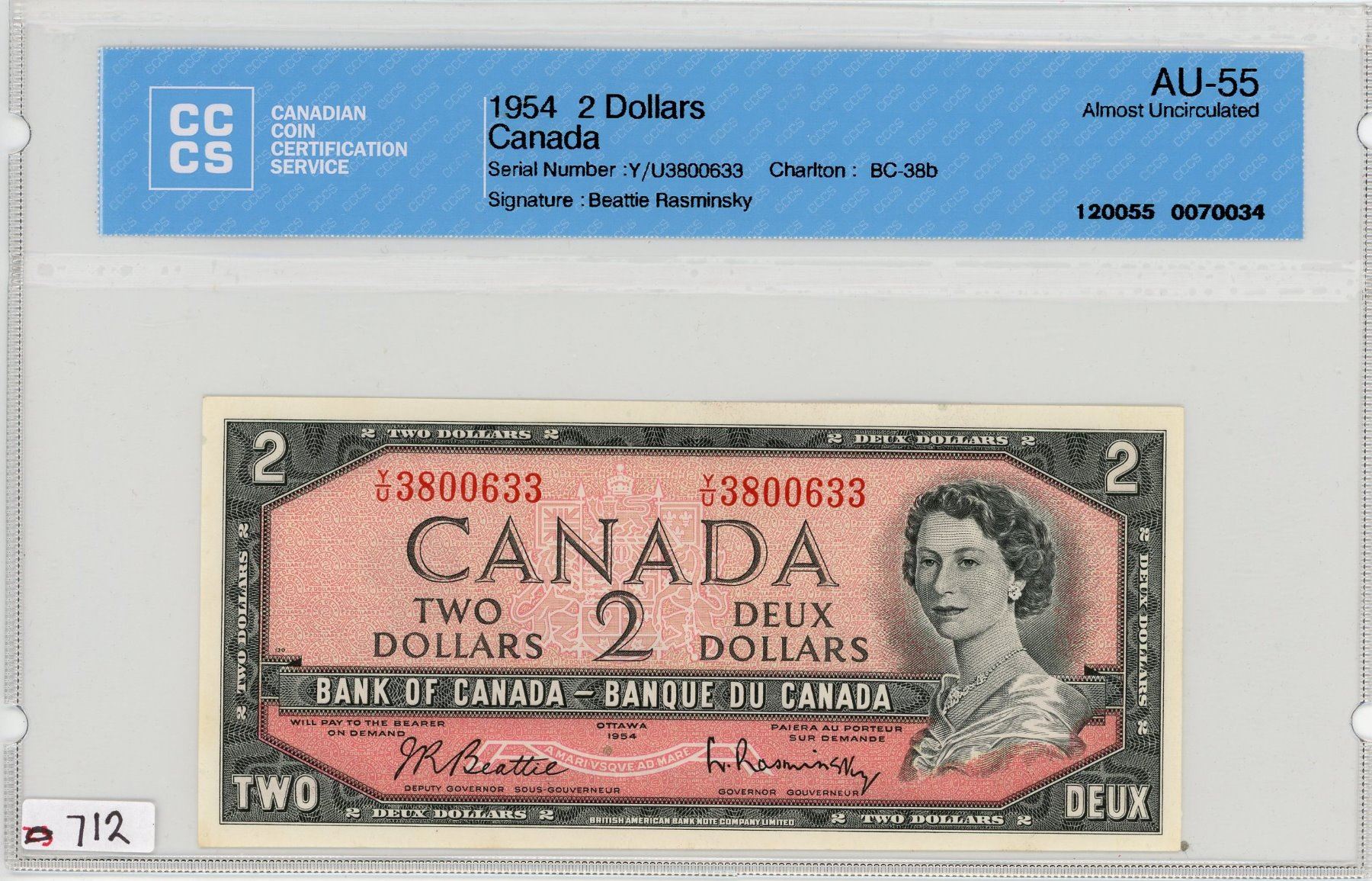 TWO DOLLAR BILL (CANADA) *1954* (CCCS GRADED)