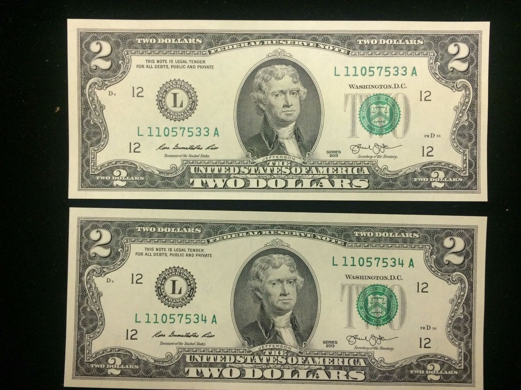 TWO DOLLAR SEQUENTIAL USA BANK NOTES
