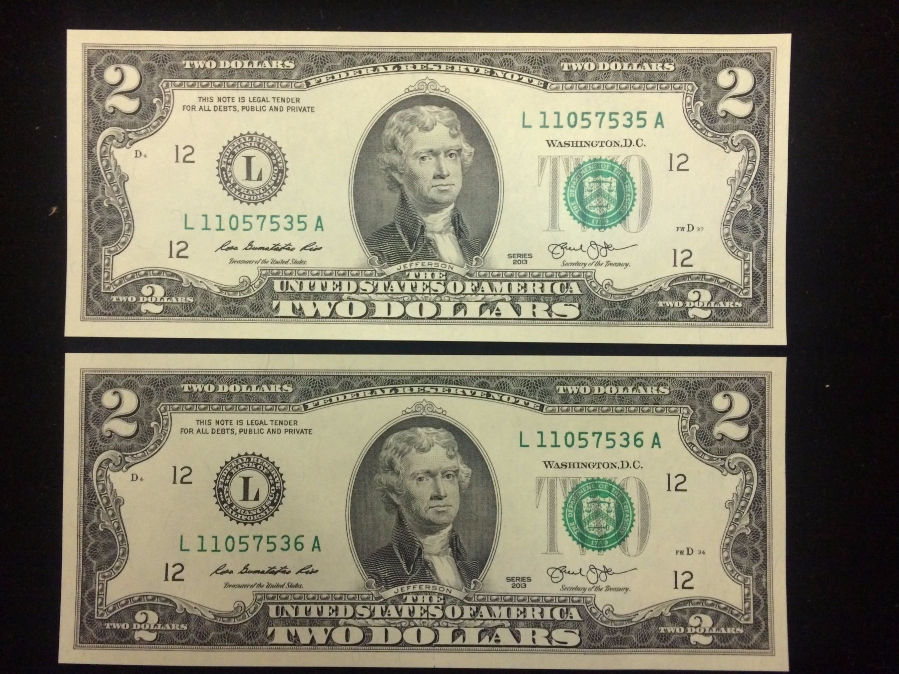 TWO DOLLAR SEQUENTIAL USA BANK NOTES