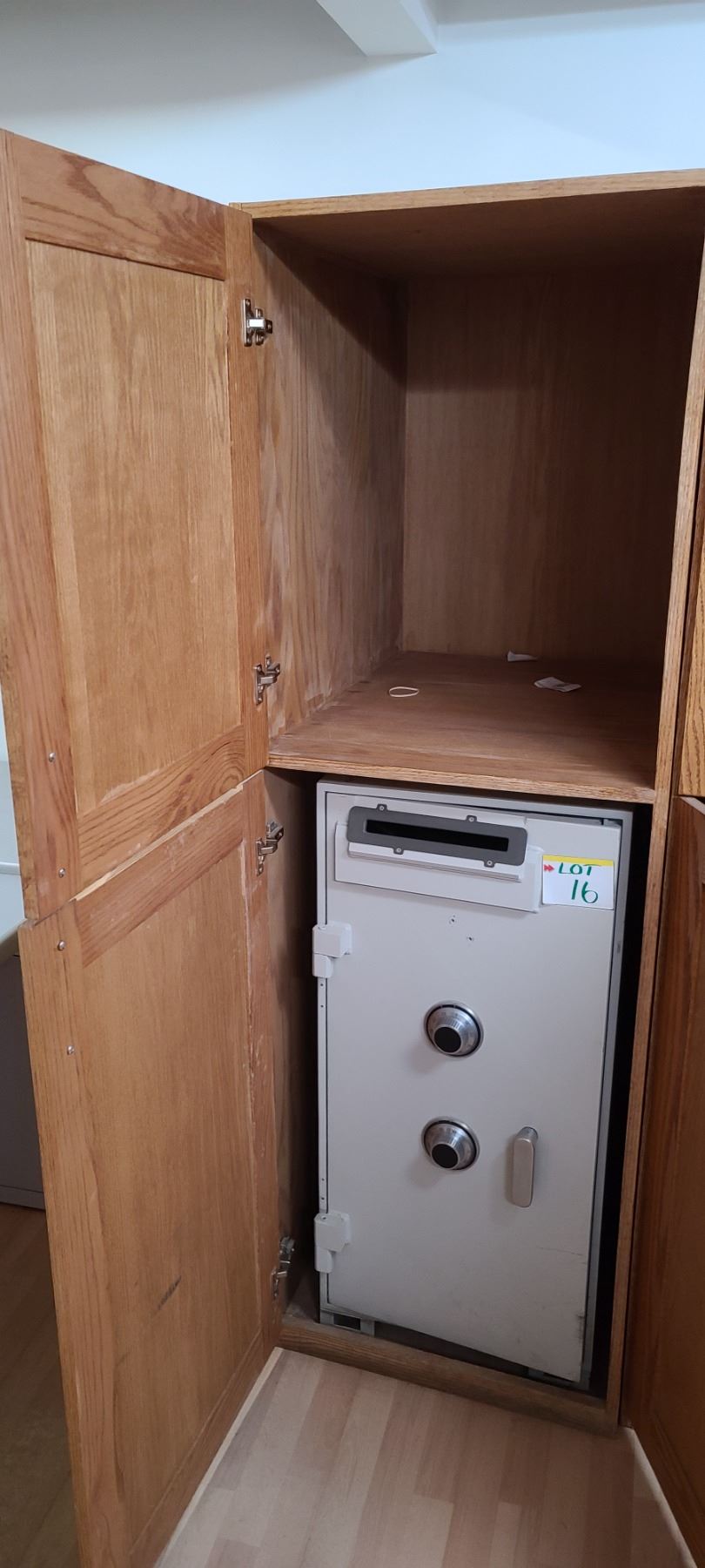 TWO DOOR WOODEN SHELVING UNIT 60'X34X72'