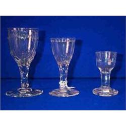 TWO FACET STEMMED ENGRAVED WINE GLASSES, c.1780, 13cms and 15cms high; and a fine mid 18th Centur...
