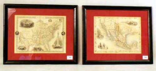 One inscribed United States, the other Mexico, California, and Texas. Folds and stains. 10"h x 13 1/2"w.