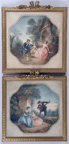 After Nicolas Lancret (1690-1743) paintings, "The Garden Party," and "The Music Lesson." 17"h x 17"w