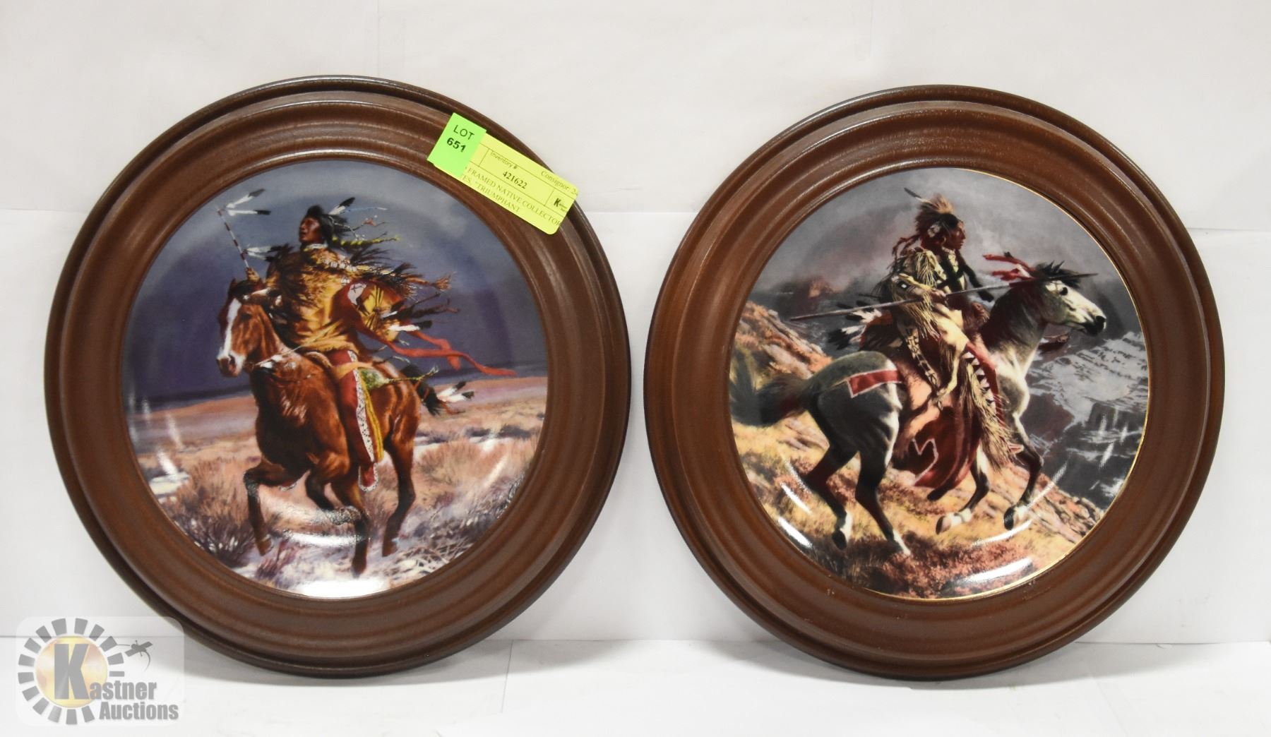 TWO FRAMED NATIVE COLLECTOR PLATES, "TRIUMPHANT