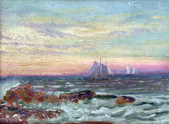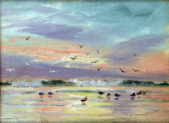 (American, 20th century). One depicting birds in the surf, signed l.l. John Hawkins 1932, the other sailboats in rough seas, signed l.r. John Hawkins 1932. 8 1/2"h x 11 1/2"w
