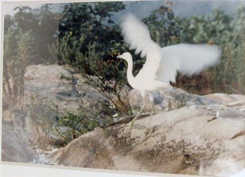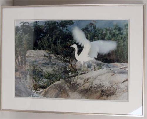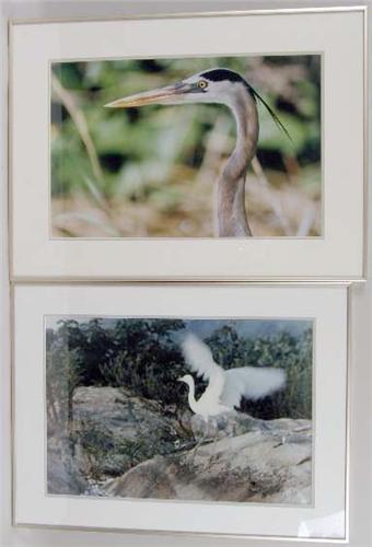 By Elsie Trask Wheeler, comprising "Egret in Hurry to Fly," and "Great Blue Heron Head". Both with title information verso. 13"h x 19"w