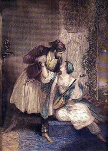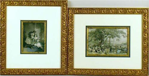 One of an embrace, 5-1/2"h x 4-1/2"w, the second, depicting a caravan with elephants at rest, 5"h x 7"w