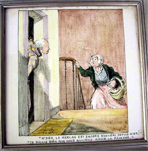 TWO FRAMED TILEWORKS BY HONORE DAUMIER