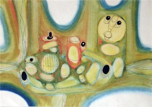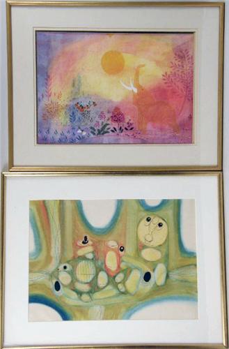 The first a watercolor signed Koppe, the second by Hargreaves (Hugh) Ntukwara, (South African, 1938-1998). 14"h x 20"w and 15"h x 21"w, respectively