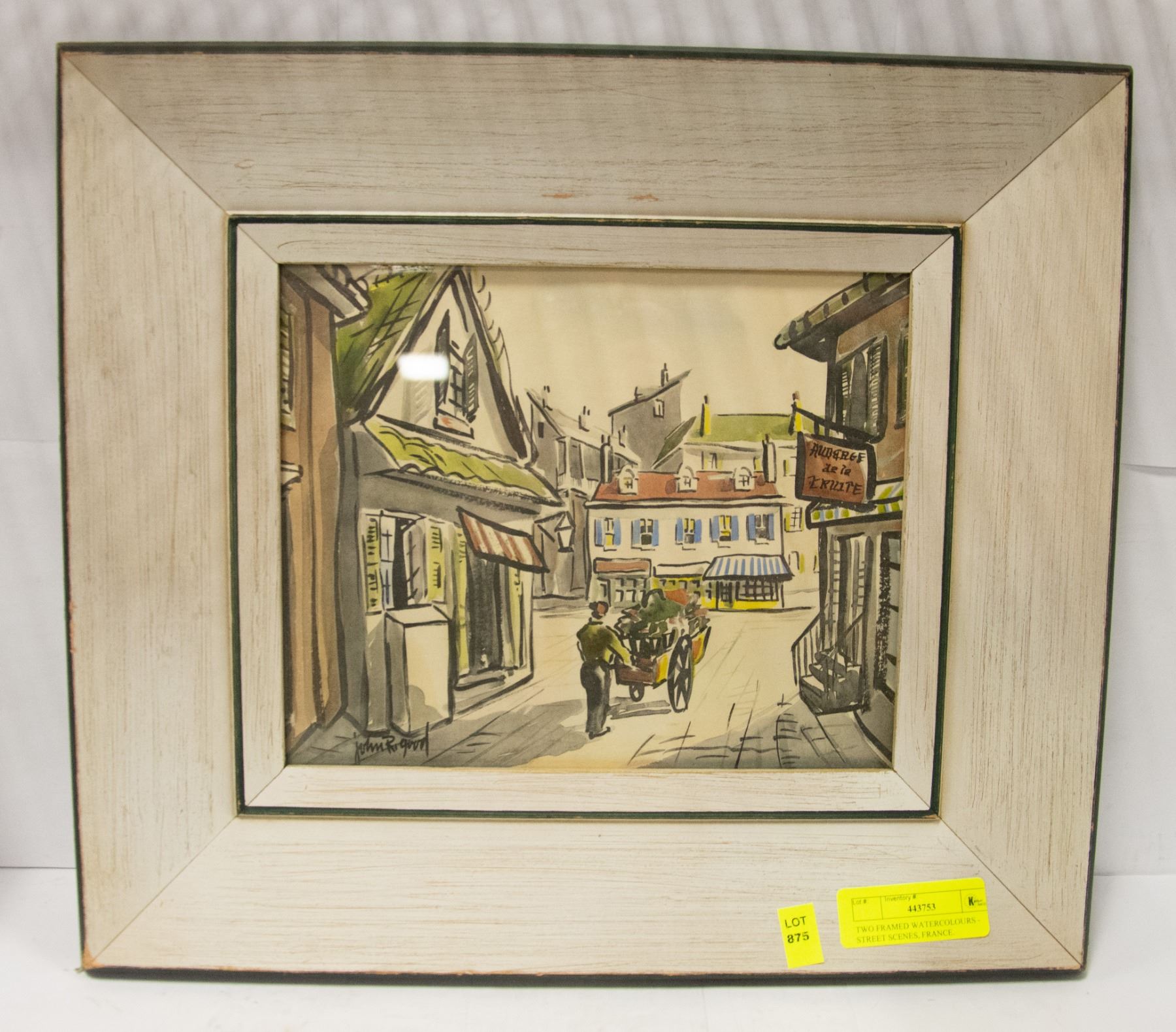 TWO FRAMED WATERCOLOURS - STREET SCENES, FRANCE.