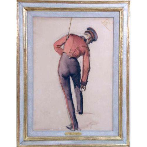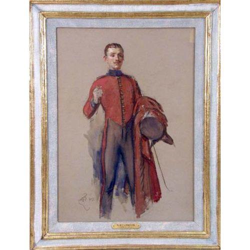 TWO FRAMED WORKS OF MEN IN UNIFORM<BR><BR>Comprising, a watercolor and a charcoal, signed with monogram and date 1913 in u.r. and l.l. by "W.B.C. Rankin," Each: 24"h x 17-1/2"w