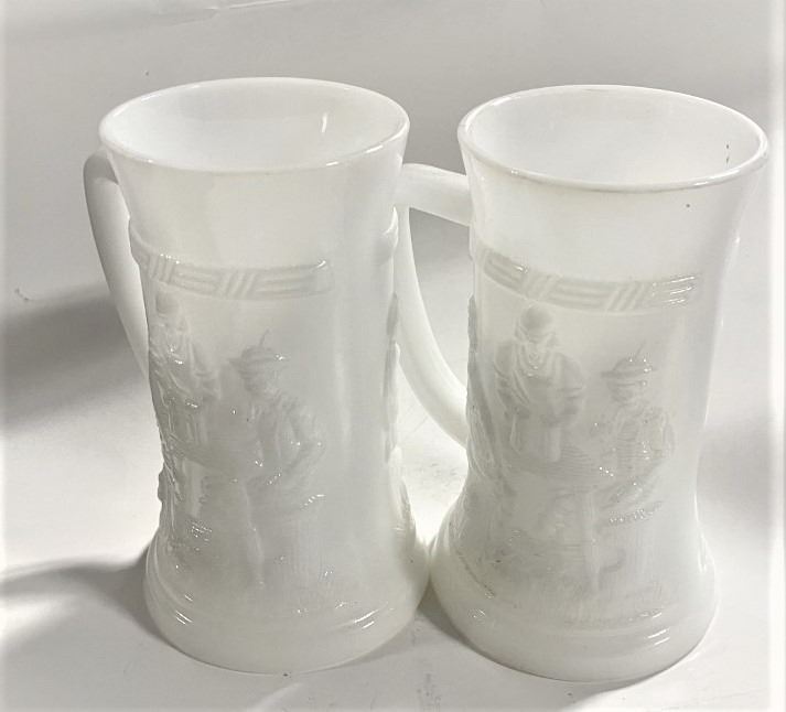 Federal Glass Beer Stein, Tavern Scene, Milk Glass, Beer Mug, Decorative Stein, Set of 2, 10 Ounce