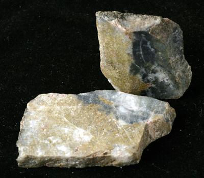 TWO GOLD IN QUARTZ SLABS. Two fabulous colorful pieces are thought to be from Goldfield, Nevada. The pair weighs 2.61 troy ounces. These slabs have a bright polish, and specimens such as these are often used in the creation of gold quartz jewelry. There measured specific gravity is 2.8 with a calculated gold content od 0.29 troy ounces. They are sold as specimens jewelry rock, a true rarity.