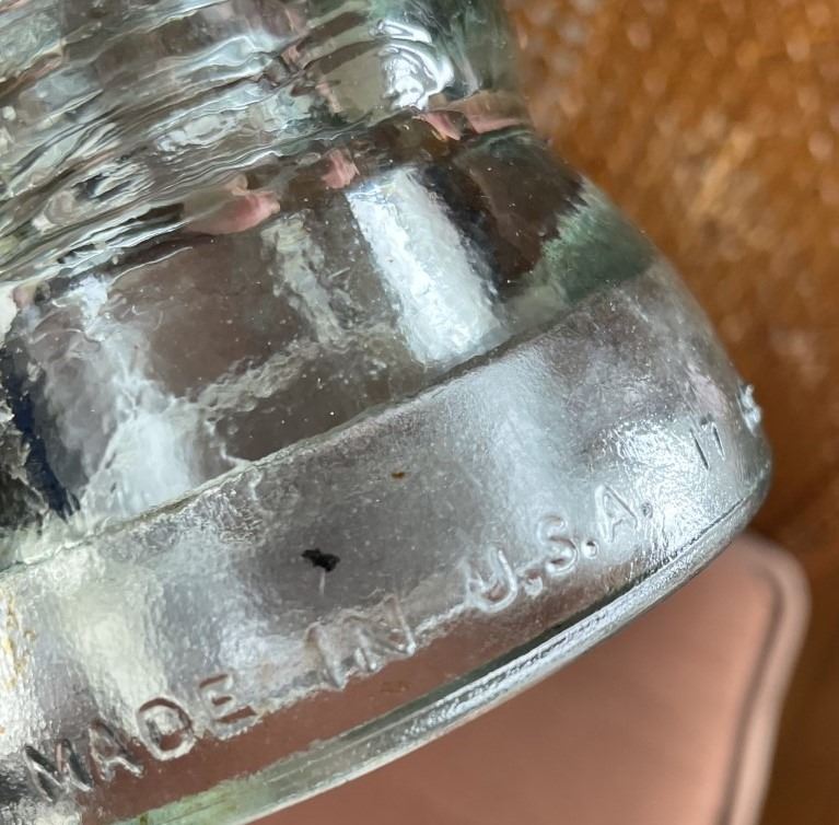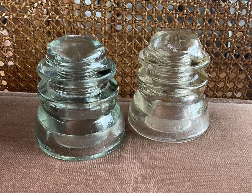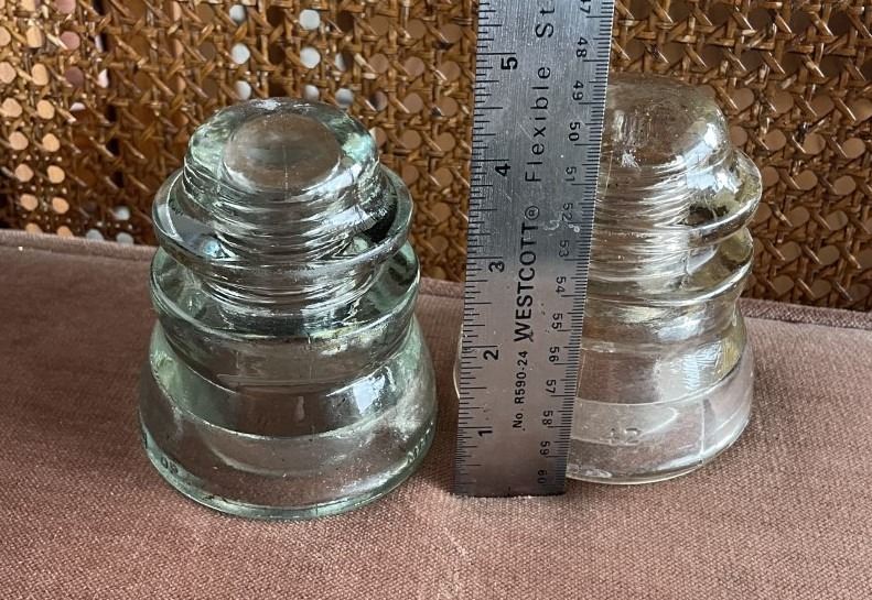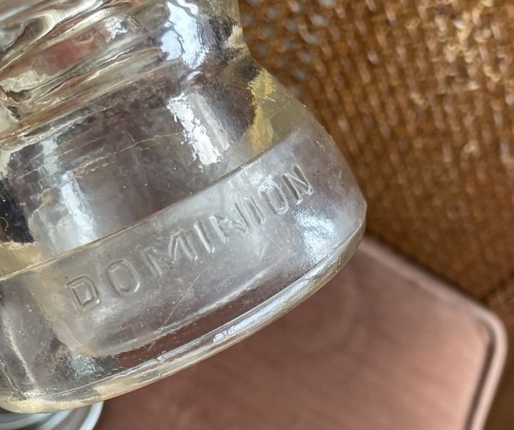 TWO Glass Insulators, One Dominion, One USA. Blue tinge to one.