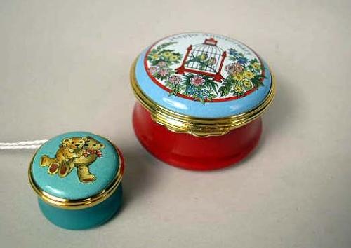 TWO HALCYON DAYS ENAMELS BOXES, ONE "HAPPY ANNIVERSARY", THE OTHER DEPICTING TWO TEDDY BEARS, BOTH IN ORIGINAL PRESENTATION BOXES;