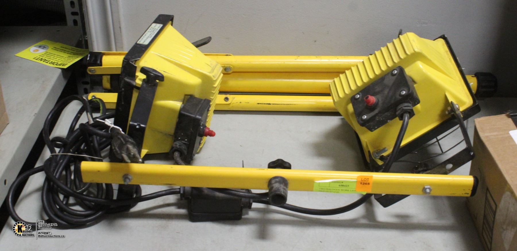 2 HALOGEN WORK LIGHTS ON TRIPOD STAND