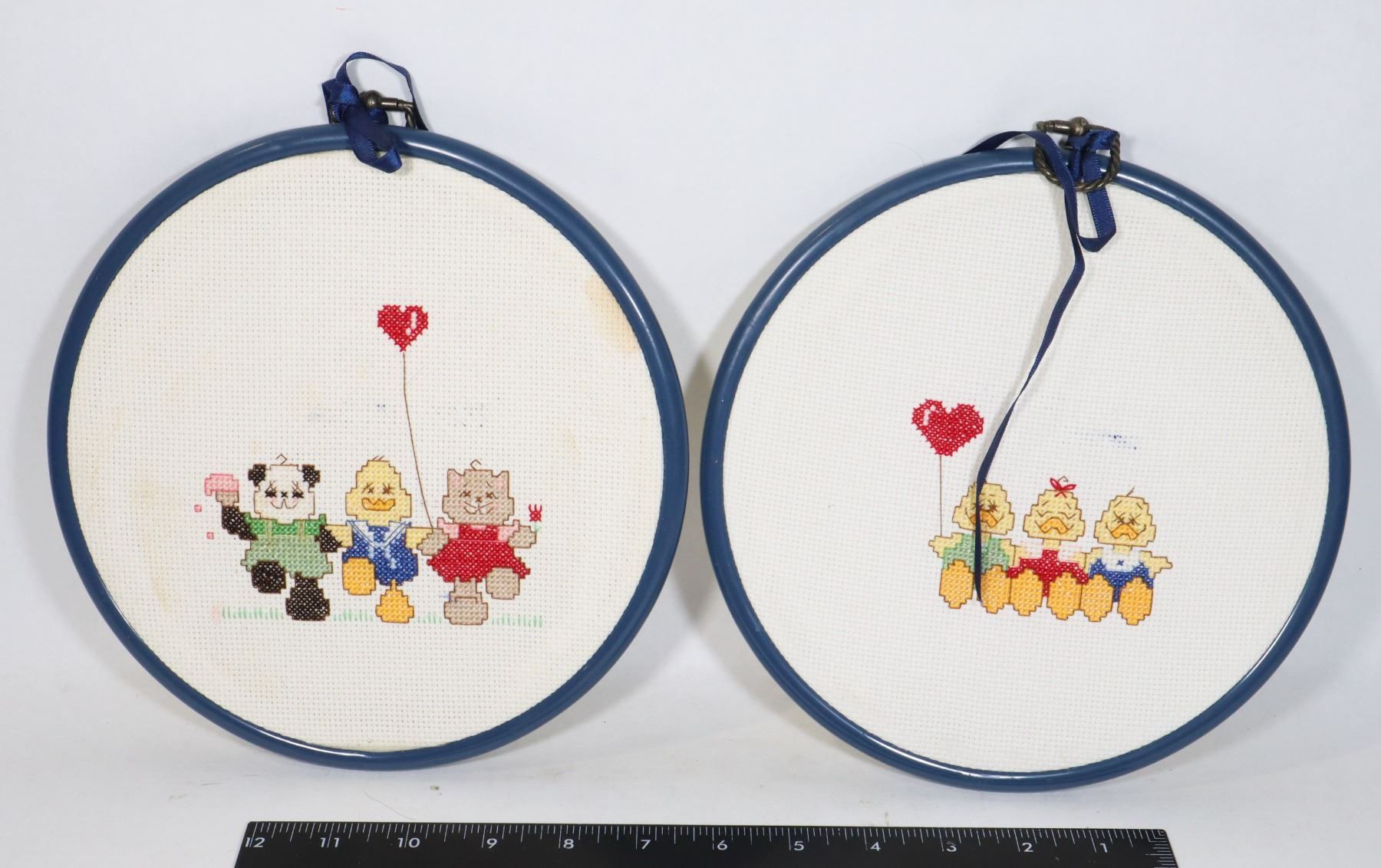 TWO HAND MADE EMBROIDERED ROUND ART PIECES