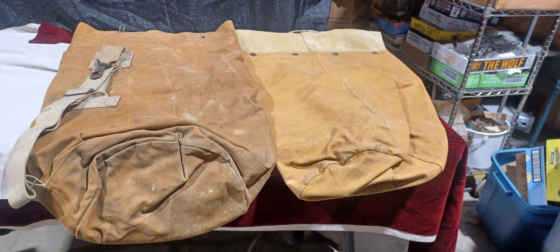 TWO HEAVY DUTY CANVAS DUFFLE BAGS