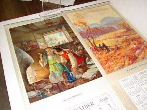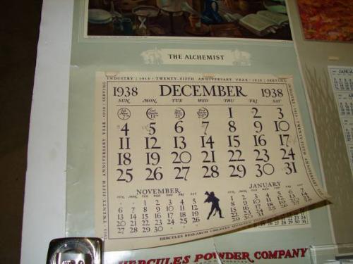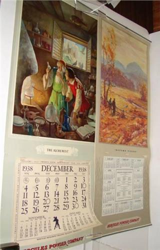 TWO HERCULES POWDER COMPANY CALENDARS FOR THE YEARS 1937 AND 1938. 1938 retaining final month paper but with tears to bottom. 1937 in excellent condition but lacking all month papers.