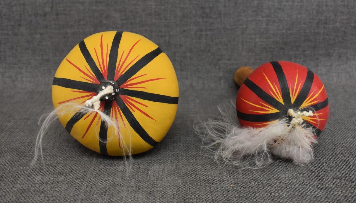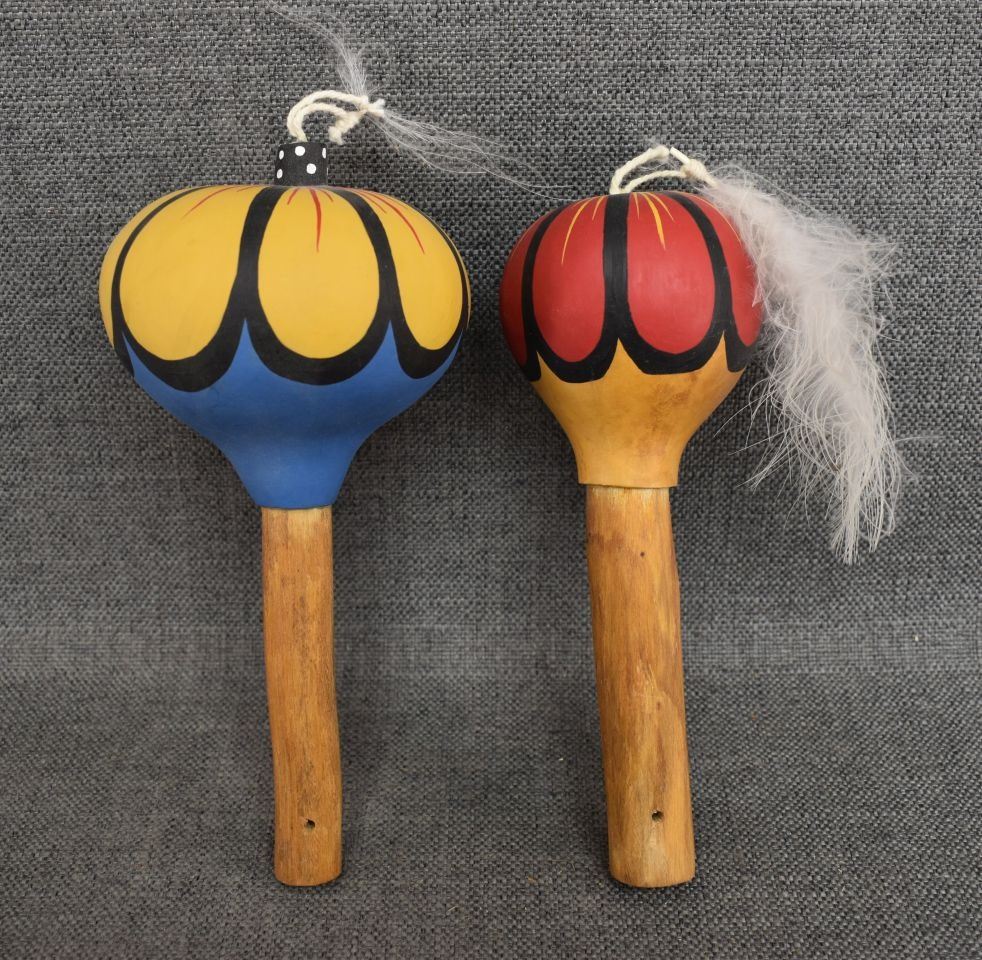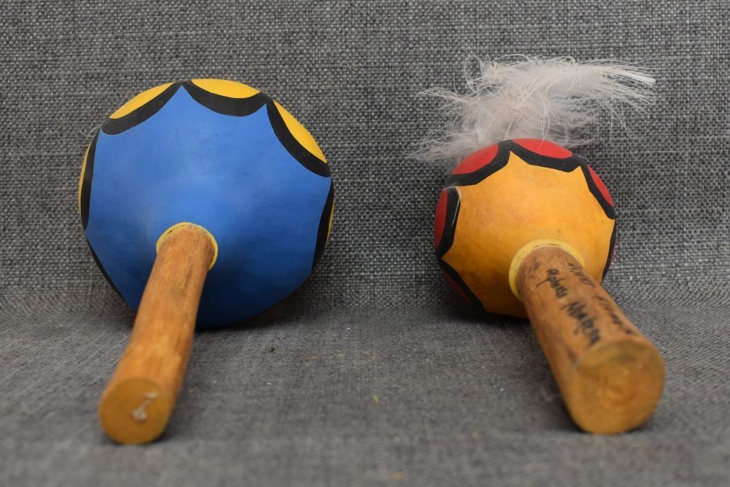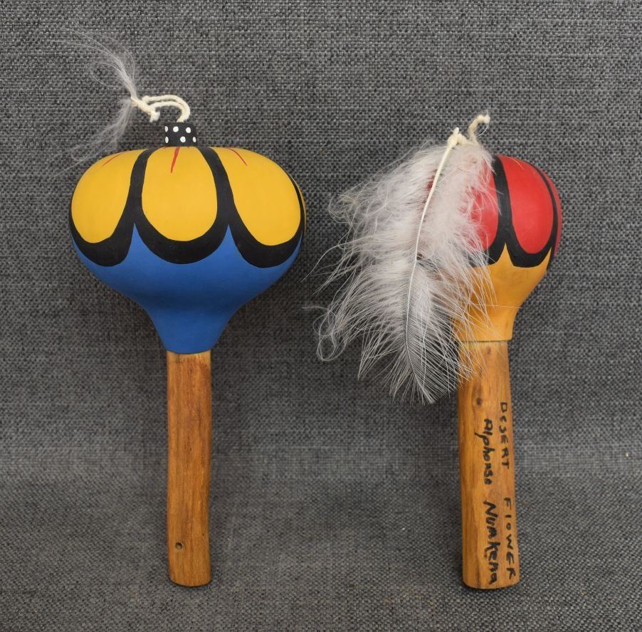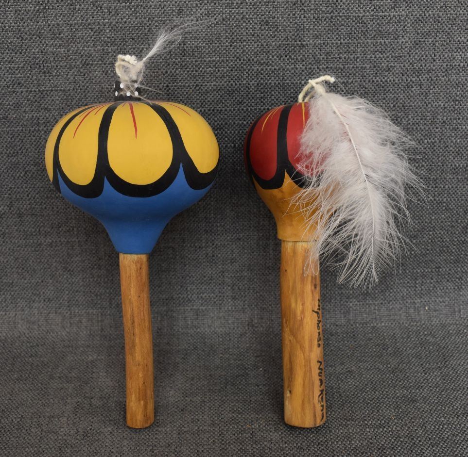 1980-90's Hopi Indian hand made wood handles with painted gourd heads one signed Alphonso Numkena largest 8.5" long