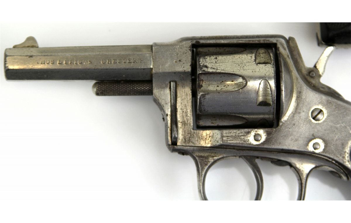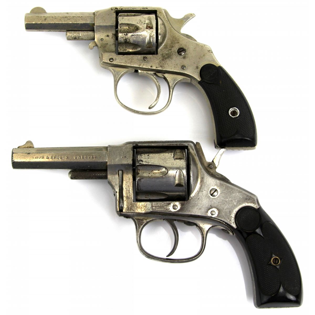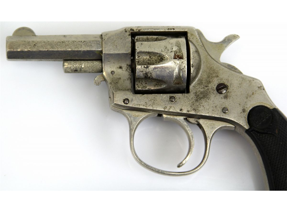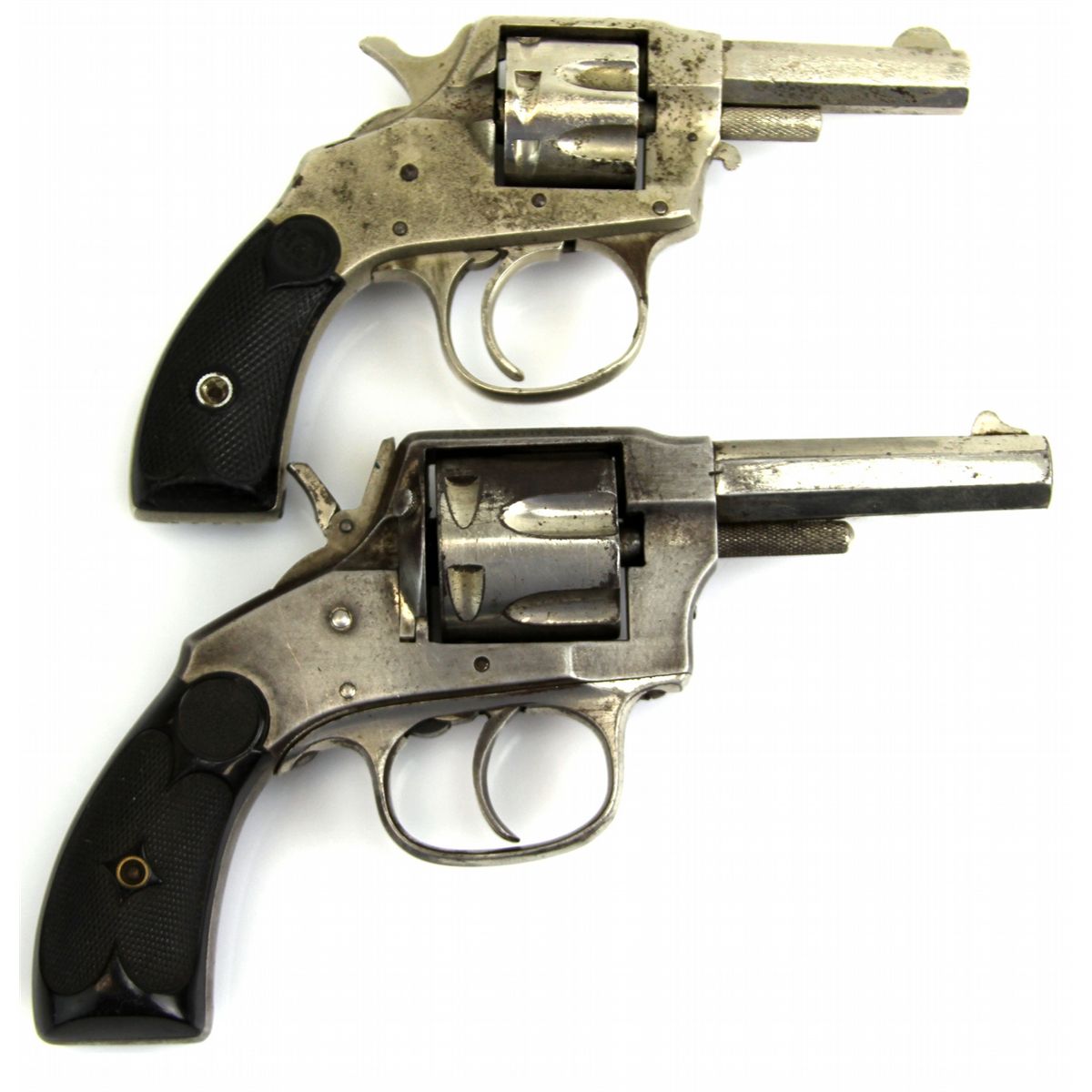 TWO HOPKINS & ALLEN XL DOUBLE ACTION REVOLVERS Two Hopkins & Allen XL Double Action revolvers. A.) XL Double action .32 caliber revolver with octagon barrel and 6 shot fluted cylinder. B.) Hopkins & Allen XL Double Action .22 caliber revolver with octagon barrel. Type: revolver Manufacturer: hopkins & allen Model: XL Caliber / Gauge: .22; .32 Serial Number: NSN; 4095 Condition: A) Fair condition, with about 60% finish and good grips. B.) poor condition, with significant pitting, past scouring, and non turning action. grip good.