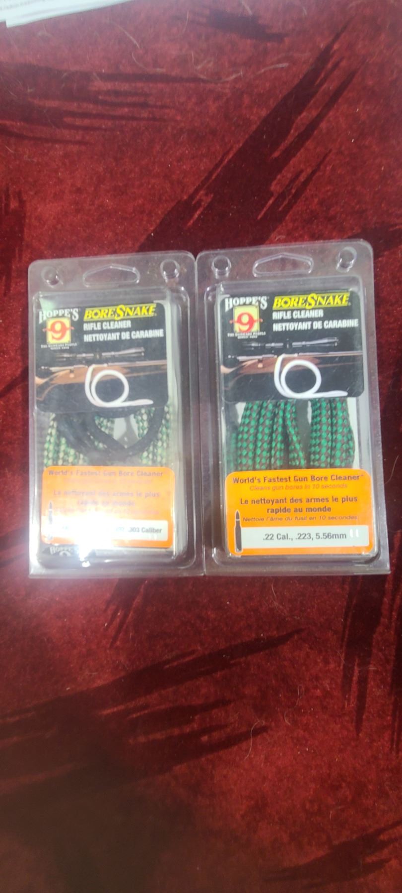 TWO HOPPES BORE SNAKES, 30 CALIBRES AND .22CAL TO 5.56MM