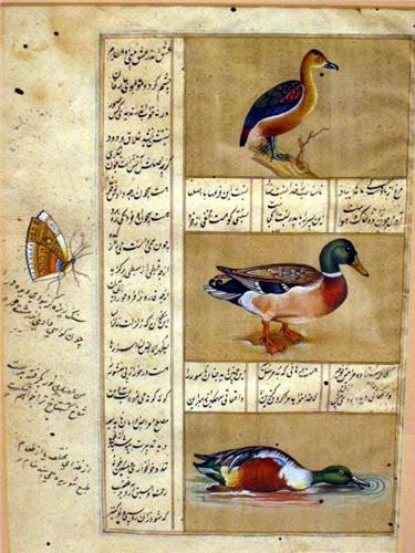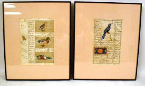 Persian, double sided and framed in glass. Some small holes. 10 1/2"h x 6 1/2"w.