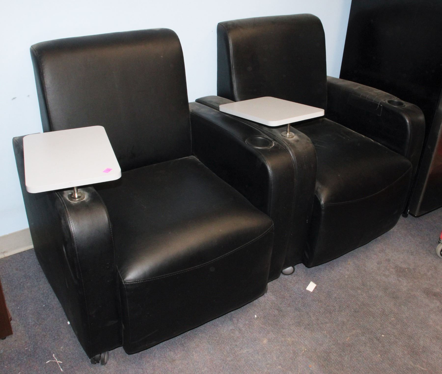 TWO IMITATION LEATHER CHAIRS, BOTH NEED A CLEANING